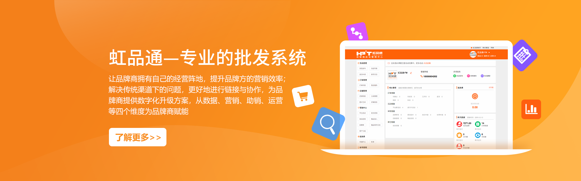 南寧虹品通軟件科技有限公司成立于2014年,是一家開發(fā)軟件技術服務公司。公司總部位于中國綠城南寧市,專注軟件行業(yè)系統(tǒng)支持和供應鏈大數(shù)據(jù)開發(fā),并將其應用于商業(yè)領域。掌握供應鏈系統(tǒng)研發(fā)、商品流通大數(shù)據(jù)、批發(fā)零售商城等核心技術,并持有多項技術專利和著作權(quán)。公司致力于幫助生產(chǎn)廠家、商品流通、銷售型企業(yè)向互聯(lián)網(wǎng)化轉(zhuǎn)型升級,利用互聯(lián)網(wǎng)獲取客戶、洞察市場、服務客戶